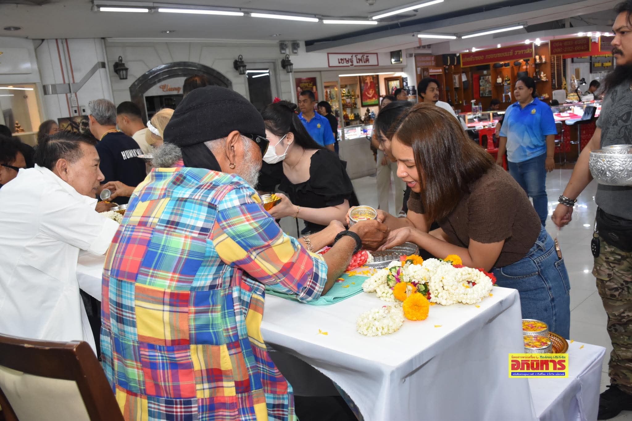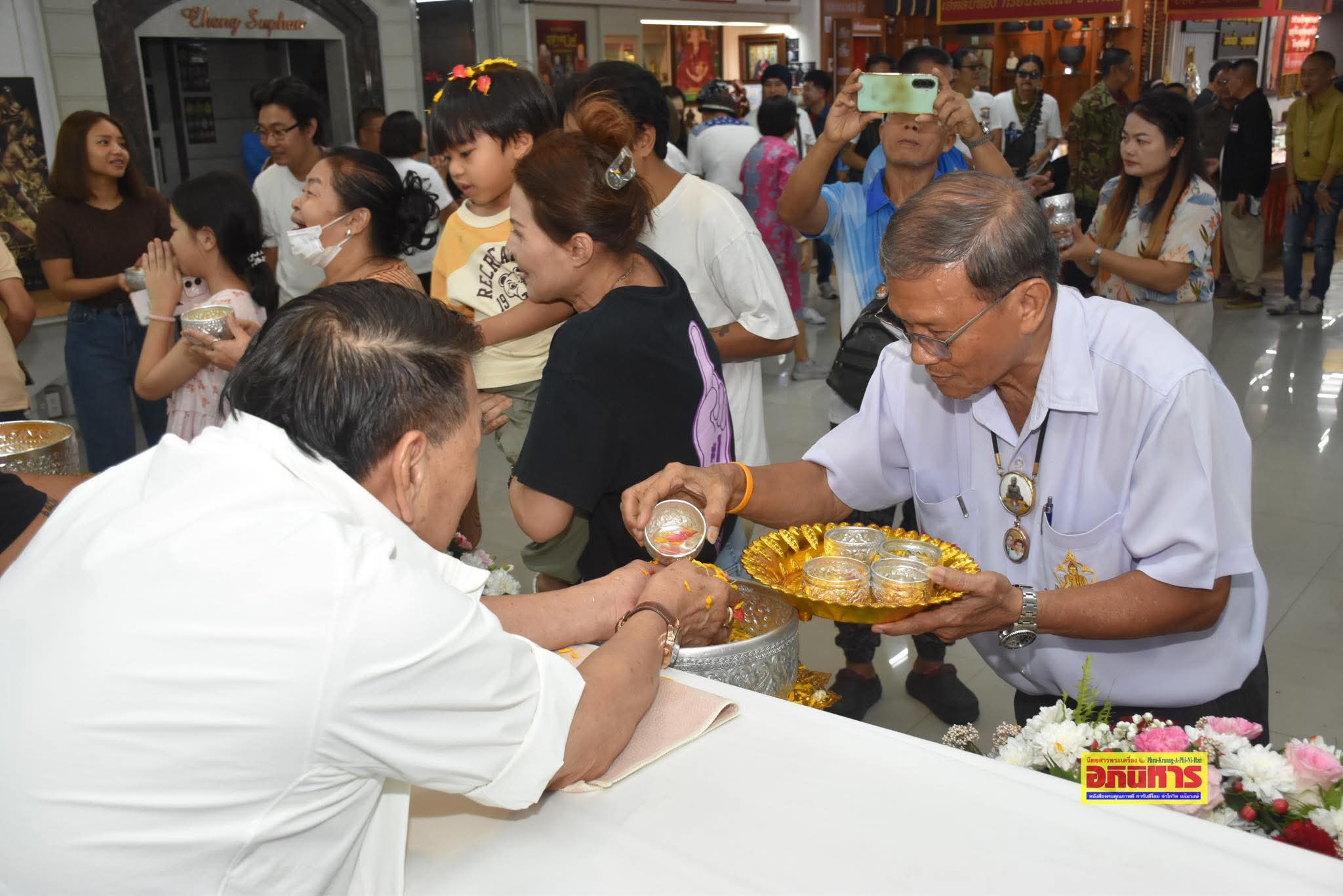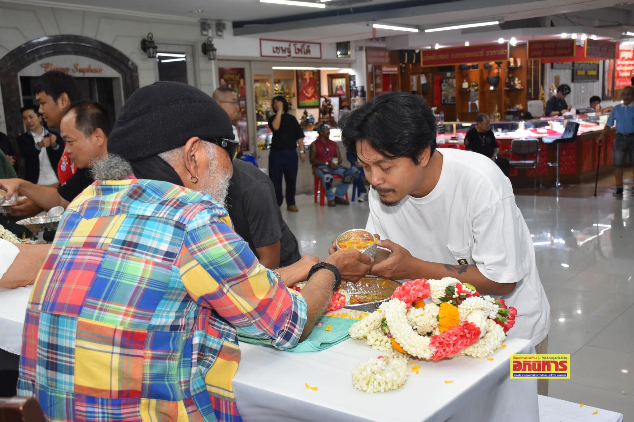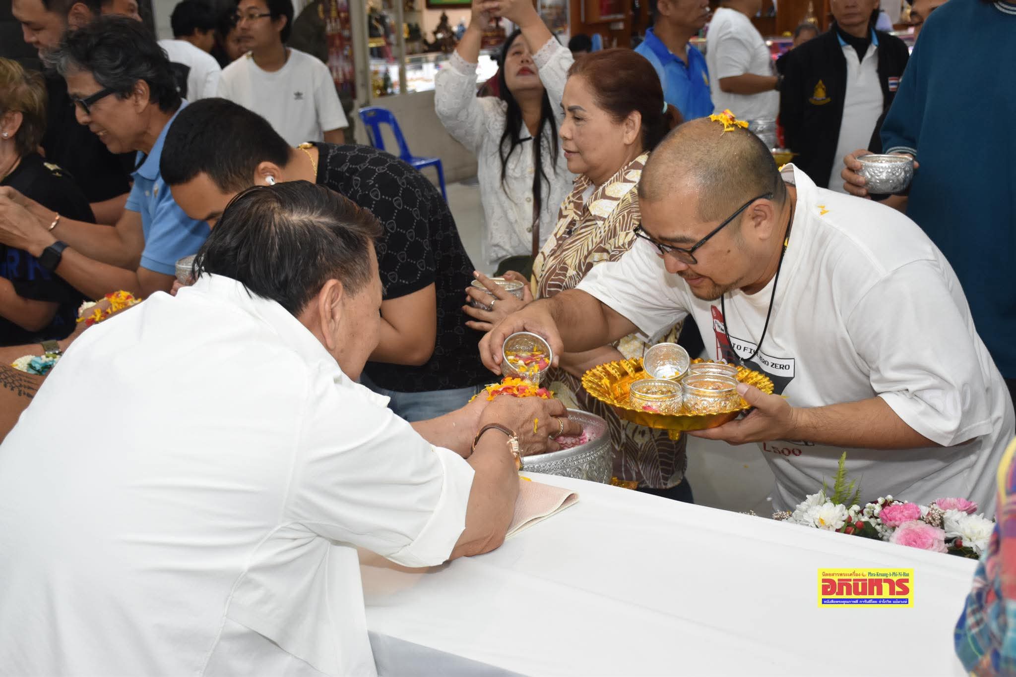 โดยมีคนวงการพระเครื่องสายต่าง ๆ มาร่วมรดน้ำขอพรกันอย่างต่อเนื่อง ตลอดงานในครั้งนี้